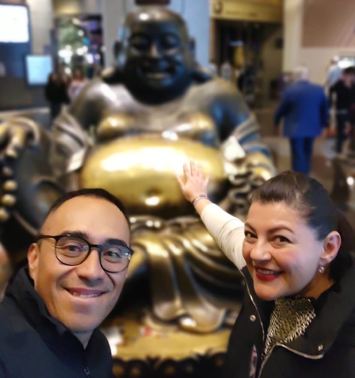 Al voltear para decirle que no estaba dispuesta a seguir caminando jajajaja, lo vi con una